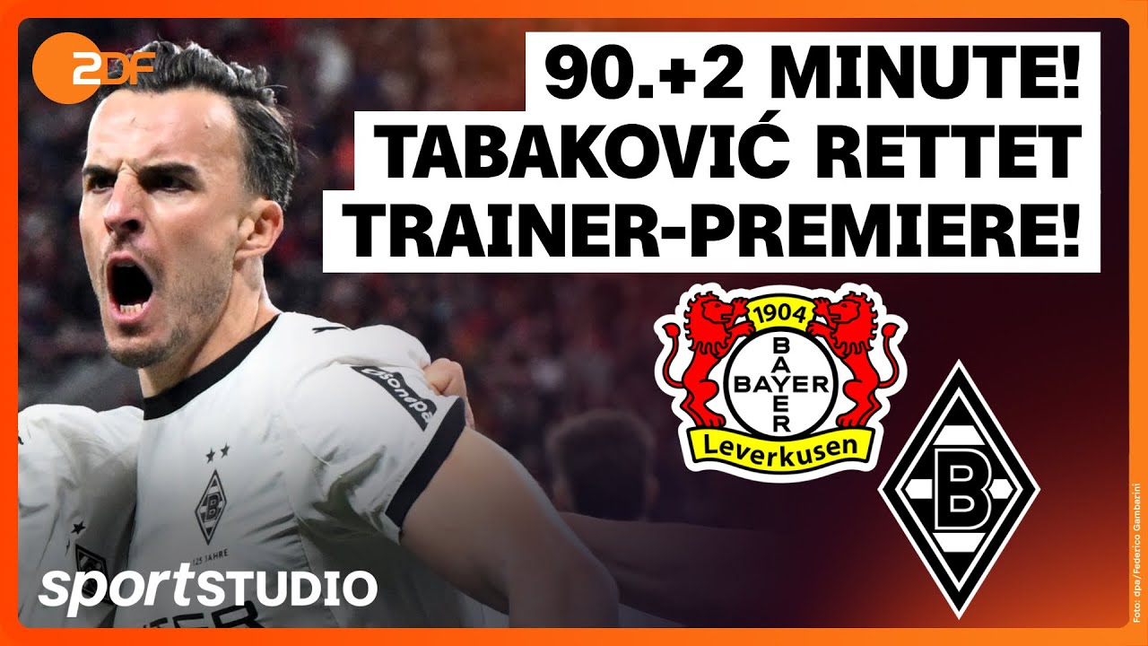 Le Borussia Mönchengladbach a apporté un point lors des débuts de l’entraîneur par intérim Eugen Polanski à Bayer Leverkusen avec un 1: 1 (0: 0). Dans le temps supplémentaire, Haris Tabakovic (90. + 2) a marqué le premier but de la saison pour les Gladbachers. Malik Tillman avait précédemment apporté le vice-champion en tête (70e). Voici les points forts de la Bundesliga, de la Ligue des champions de l’UEFA et de la Coupe DFB. En outre, les moments forts des jeux sélectionnés de la 2e Bundesliga et de la Bundesliga féminine. Abonnez-vous à la chaîne ici: https://kurz.zdf.de/abosport/ Il y a (encore) le succès, comme les finales l’ont montré au Championnat d’Europe U21. Néanmoins, le football allemand a un problème avec les jeunes talents. Surtout en ce qui concerne la quantité, d’autres nations ont classé le DFB. L’association agit, mais en fait-elle assez? Et ne serait-ce pas la solution pour plusieurs problèmes pour l’U21 pour l’U21 comme en Angleterre? Nous en discutons avec le directeur général de DFB Andreas Rettig dans le nouveau Bolzplatz, que vous pouvez maintenant diffuser ici: https://kurz.zdf.de/bmp/ sportstudio à Instagram https://www.instagram.com/sportsstudio/ sportStudio à Tiktok HTTP SportStudio à WhatsApp https://kurz.zdf.de/6em3u/ Une semaine après l’apparition désastreuse contre Brême (0: 4), Gladbach a initialement attendu au plus profond de sa propre moitié – et a survécu à la phase de Bayer Urge au début parce que le gardien de but Moritz Nicolas a sauvé Nicolas fortement sur la ligne (9e). Leverkusen se souvient peu contre les invités disciplinés défensifs. Sans le capitaine bloqué Robert Andrich, Bayer ne savait rien à voir avec sa propre possession de balle. Le Gladbacher, en revanche, a travaillé davantage dans le match par minute à minute. Eugen Polanski entraîne activement. Ses applaudissements sur l’objectif soi-disant première saison du Borussia se sont rapidement calmés, après une intervention VAR, il était clair: Jens Castrop (23e) avait été hors-jeu. En tout cas, la nouvelle émotivité que le patron de Gladbach avait espéré dans la décision pour Polanski a amené les professionnels sur le terrain. Les Borussiens ont fixé des aiguilles et sont venus à la chance: cependant, Kevin Stöger (57e) et Shuto Machino (60e) ont raté de peu. Leverkusen a essayé beaucoup plus sur l’offensive et a été récompensé: après un croisement d’Ernest Poku, Schick Schick a frappé un trou d’Air, le ballon est venu à Malik Tillman, qui était considéré comme en tête. Mais Gladbach a toujours fait l’équilibre tardif. Les listes: Bayer 04 Leverkusen: Flekken – Quansah, Badé (63. Tape), Tapsoba – Vázquez (63. Poku), Garcia, Tillman, Grimaldo – Maza (84th Hofmann), Ben Seghir (76th Echeverri) – Schick (76. Mönchengladbach: Nicolas – Diks, Elvedi, Chiarodia (86th Ranos) – Scally, Reitz (86th Herrmann), Engelhardt, Ullrich – Stöger (80th Reyna)