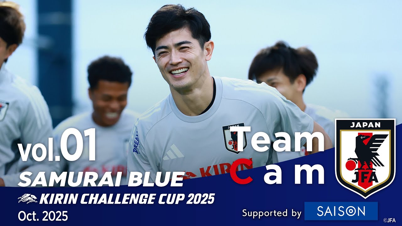 #SAMURAIBLUE (Équipe nationale du Japon) a commencé l’entraînement le 6 octobre (lundi) pour la Kirin Challenge Cup 2025 contre l’équipe nationale du Paraguay et l’équipe nationale du Brésil. Le match contre le Paraguay aura lieu le 10 octobre (vendredi) à 19h20 et le match contre le Brésil aura lieu le 14 octobre (mardi) à 19h30. Pendant la période de représentation de SAMURAI BLUE en octobre et novembre, TeamCam sera soutenu par Credit Saison Co., Ltd., un partenaire majeur de JFA. À tous ceux qui soutiennent l’équipe nationale japonaise de football, le jeu recommence. « Créons l’histoire ensemble. » 00:00 Ouverture 00:36 Rassemblement des joueurs 02:32 Au restaurant 03:11 Entraînement au gymnase 04:45 Entraînement 11:23 Premier appel #Saito Mitsuki 12:11 #Taniguchi Shogo 14:36 Rassemblement des joueurs du 7 octobre 15:50 Salle de restauration 17:25 Entraînement 21:14 Entraînement de tir 26:53 Autographes des joueurs ▼ Cliquez ici pour plus de détails http://www.jfa.jp/samuraiblue/ ▼ #TeamCam suit de près l’équipe Cliquez ici pour les vidéos passées https://www.youtube.com/playlist?list=PLddnt05D-xvQMMcJ_QR8sm–yWzluHaHi ▼Site officiel « JFA.jp » https://www.jfa.jp/samuraiblue/ ▼Official X (ancien Twitter) https://twitter.com/jfa_samuraiblue ▼Instagram officiel https://www.instagram.com/japanfootballassociation/ ▼Tiktok officiel https://www.tiktok.com/@jfa_samuraiblue/ ▼Facebook officiel https://www.facebook.com/samuraiblue/ ▼Boutique en ligne officielle « JFA STORE » https://official-store.jfa.jp/ ▼Carte à collectionner numérique officielle « Collection de cartes de l’équipe nationale de football du Japon » https://cardcollection.jfa.jp/