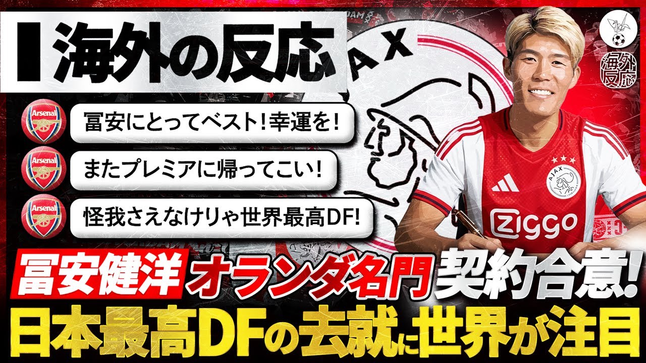 2025/12/15 Le journaliste des transferts Fabrizio Romano a rapporté que le défenseur de l’équipe nationale japonaise Takehiro Tomiyasu était sur le point de rejoindre la prestigieuse équipe néerlandaise de l’Ajax. Il semblerait qu’il s’agisse d’un contrat à court terme et que les négociations semblent en être à leur phase finale. Ce contrat sera une opportunité pour Tomiyasu de retrouver son instinct de compétiteur après son retour d’une longue blessure, et est également considéré comme une décision d’une grande importance pour l’équipe nationale japonaise alors qu’elle se prépare pour la Coupe du Monde. Cette nouvelle a attiré l’attention des fans tant au niveau national qu’international et a suscité diverses réactions sur les réseaux sociaux, principalement de la part des supporters d’Arsenal. Dans cette vidéo, jetez un œil aux réactions de l’étranger à l’annonce du retour de Tomiyasu à l’Ajax. ▼DMM×DAZN Hodai▼Annonce https://px.a8.net/svt/ejp?a8mat=3TF67J+9X83QQ+59RE+5YZ77 ▼WOWOW à la demande▼Annonce https://t.afi-b.com/visit.php?a=E14702c-e481058r&p=E924117r ▼Timeline▼ 0:00 Ouverture 0:47 Romano Cannon▼Vidéos associées▼ https://youtu.be/L1ROMKE3BDg https://youtu.be/pXnQKHi4Tow Veuillez aimer, vous abonner à la chaîne et commentaire. ▼Uniforme de l’équipe nationale du Japon▼Ad Dernière 2024 Domicile / Réplique / Non marqué▶https://a.r10.to/hNiYFS Dernière 2024 Extérieur / Réplique / Non marqué▶https://a.r10.to/hNIUpO Dernière 2024 Domicile / Réplique / Marqué▶https://a.r10.to/hkGEhF #Réactions à l’étranger #Japan National Soccer Team #World Cup #daihyo #SAMURAIBLUE #Kiyoshi Itakura #Kiyo Ueda #Takehiro Tomiyasu Twitter : https://twitter.com/samuraiblue2fin _________________________________________________________________________________ Effet sonore : DOVA-SYNDROME https://dova-s.jp/ VOICEVOX : Ryusei Aoyama, Kotaro Shirakami, Meo Kenzaki, Takehiro Kurono, Shuji Susumatsu, Sourin Kirigashima, Al Nekoshi, Ritsu Namine, Mochiko (cv Asuha Yomogi), WhiteCUL, Tsumugi Kasukabe Référence : https://x.com https://x.com/FabrizioRomano/status/2000522727300505988 https://www.facebook.com/photo/?fbid=1519013373359482&set=a.188926256368207