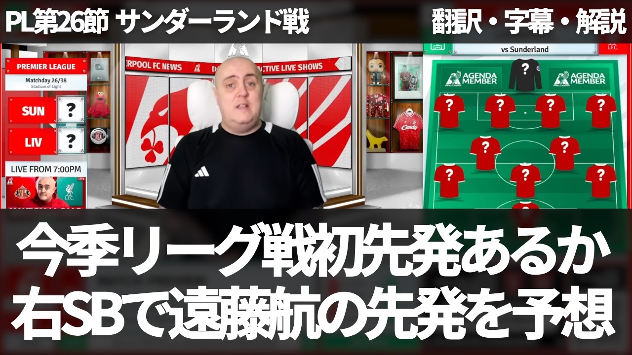 00:48 Sous-titres anglais/japonais 09:31 Commentaire #Wataru Endo #Liverpool #Réaction à l’étranger Liverpool jouera contre Sunderland lors de la 26e journée de Premier League. Lors du match précédent contre Manchester City, Szoboslai avait reçu un carton rouge dans les dernières minutes du match et avait été suspendu pour ce match. Le poste d’arrière droit sera probablement Curtis Jones ou Wataru Endo, Craig d’Anfield Agenda prédisant que Wataru Endo sera utilisé. Source : Nom de la chaîne : Anfield Agenda Titre de la vidéo : SUNDERLAND vs LIVERPOOL ! Lien de prédiction et d’aperçu du début du XI : https://www.youtube.com/watch?v=Jj659_5z4bc Avertissement : dans cette vidéo, nous avons inclus des clips d’autres créateurs à des fins de commentaires, de critiques ou de contenu éducatif, qui relèvent de la doctrine de l’utilisation équitable. Nous avons fait des efforts pour garantir que ces clips sont utilisés conformément aux principes d’utilisation équitable et ne portent pas atteinte aux droits d’auteur ou aux licences des créateurs originaux. Si vous pensez qu’un contenu de cette vidéo peut porter atteinte à vos droits, veuillez nous contacter directement afin que nous puissions résoudre le problème rapidement. Nous apprécions votre compréhension et votre coopération.