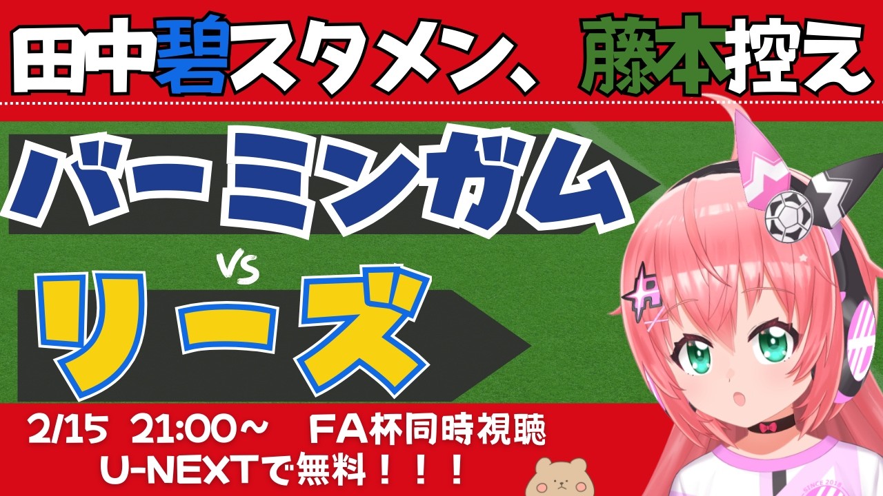 Onze de départ d’Aoi Tanaka ! L’ancien joueur de Tokyo Verdy, Hiroya Fujimoto, est également sur le banc ! Togo Furuhashi et Tomoki Iwata sortent du banc ! Je regarderai le 4e tour de la FA Cup 25/26 Birmingham City contre Leeds United en même temps ~ Je m’appelle Hikari Riria, un VTuber de football moelleux ☆ ! Regardons la FA Cup en même temps avec une sensation douce, amusante et mignonne ! Vidéo sur U-NEXT ! S’il vous plaît, regardez cette émission comme s’il s’agissait d’une radio ! S’il vous plaît, arrêtez de calomnier les joueurs, les entraîneurs et les diffuseurs ! Chaîne d’assistance de Tokyo Verdy : https://www.youtube.com/channel/UCwPQhkZql5skQg1PAc5AXQg Animation de points : @SiauwAdhie Liste des joueurs : TAKTIKALista https://tacticalista.com/ Production de la chanson originale : @pizuyascell_toho ☆☆☆☆☆☆☆☆☆☆☆☆☆☆ Merci d’avoir regardé ! Je suis la YouTubeuse virtuelle japonaise, Riria Hikari. Je veux être un personnage d’anime pour fille ! Appelez-moi « Riria » ou « Riazou ».