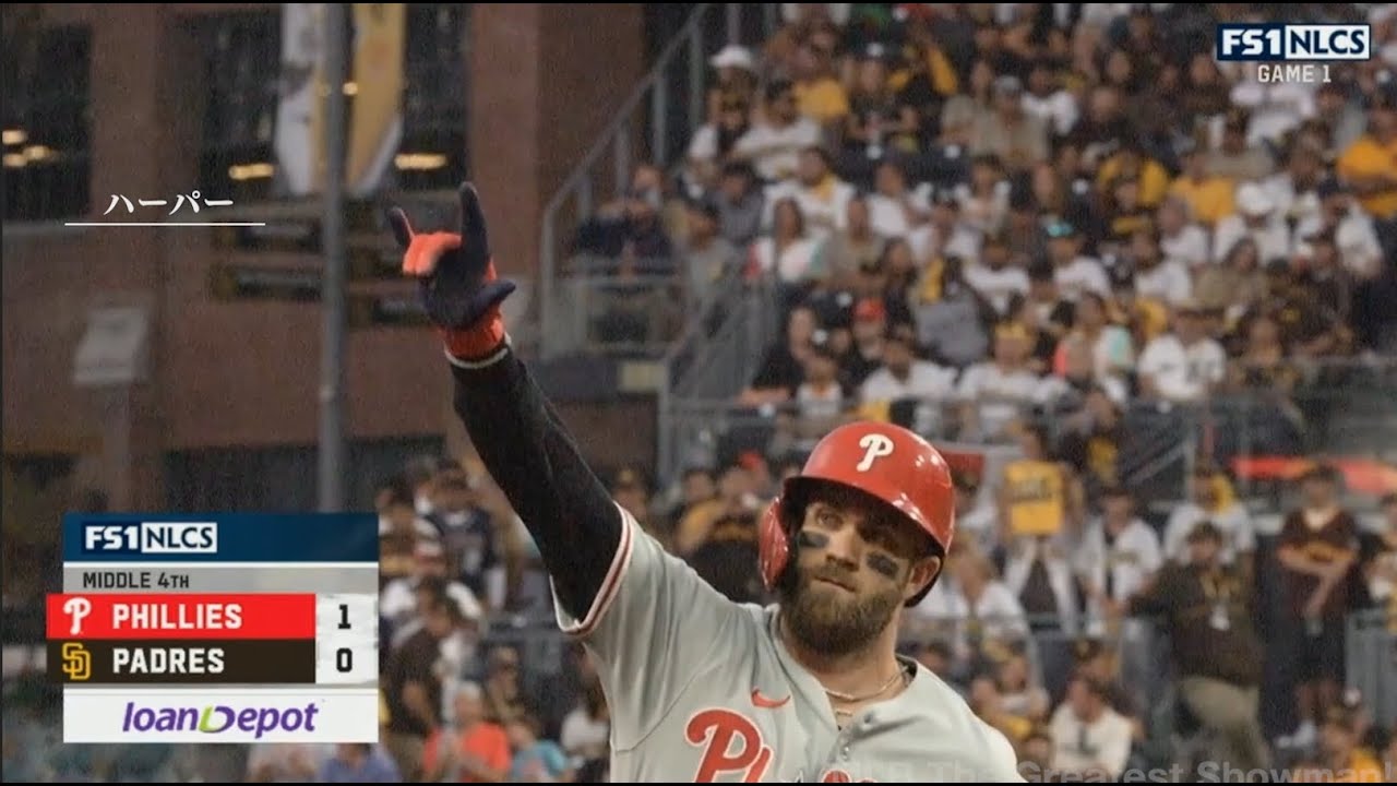 19 octobre Phillies vs Padres 2e manche Harper, l’homme dont Yu Darvish se méfiait le plus, a frappé! ! Les Phillies prennent les devants avec un home run ! ! #harper#yu Darvish#phillies
