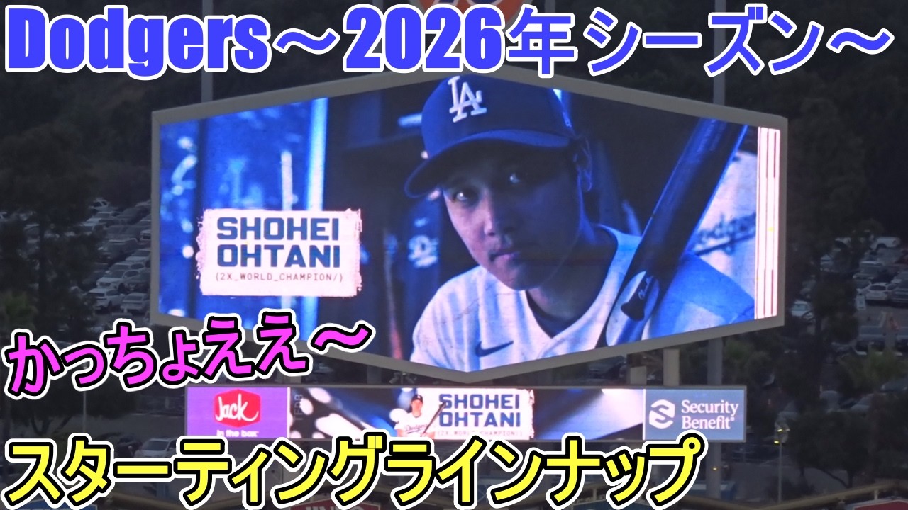 La formation de départ des Dodgers est affichée sur grand écran. contre les Cleveland Guardians ~Premier match de la série~ Shohei Ohtani joue en tant que n°1 DH 2026.03.30 @shinsukehandyman #ShoheiOhtani #StartingLineup #dodgers