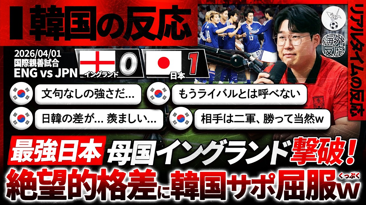 ![[Réactions à l’étranger]Les « Coréens » abandonnent après la victoire du Japon sur l’Angleterre. Réactions de la Corée du Sud qui désespère de la différence de capacités avec l’équipe nationale japonaise : « Nous ne pouvons plus qualifier le Japon et la Corée du Sud de rivaux… » [Réactions à l'étranger]Les "Coréens" abandonnent après la victoire du Japon sur l'Angleterre. Réactions de la Corée du Sud qui désespère de la différence de capacités avec l'équipe nationale japonaise : "Nous ne pouvons plus qualifier le Japon et la Corée du Sud de rivaux..."](https://www.japon2021.com/wp-content/uploads/2026/04/1775302805_maxresdefault-1170x658.jpg)