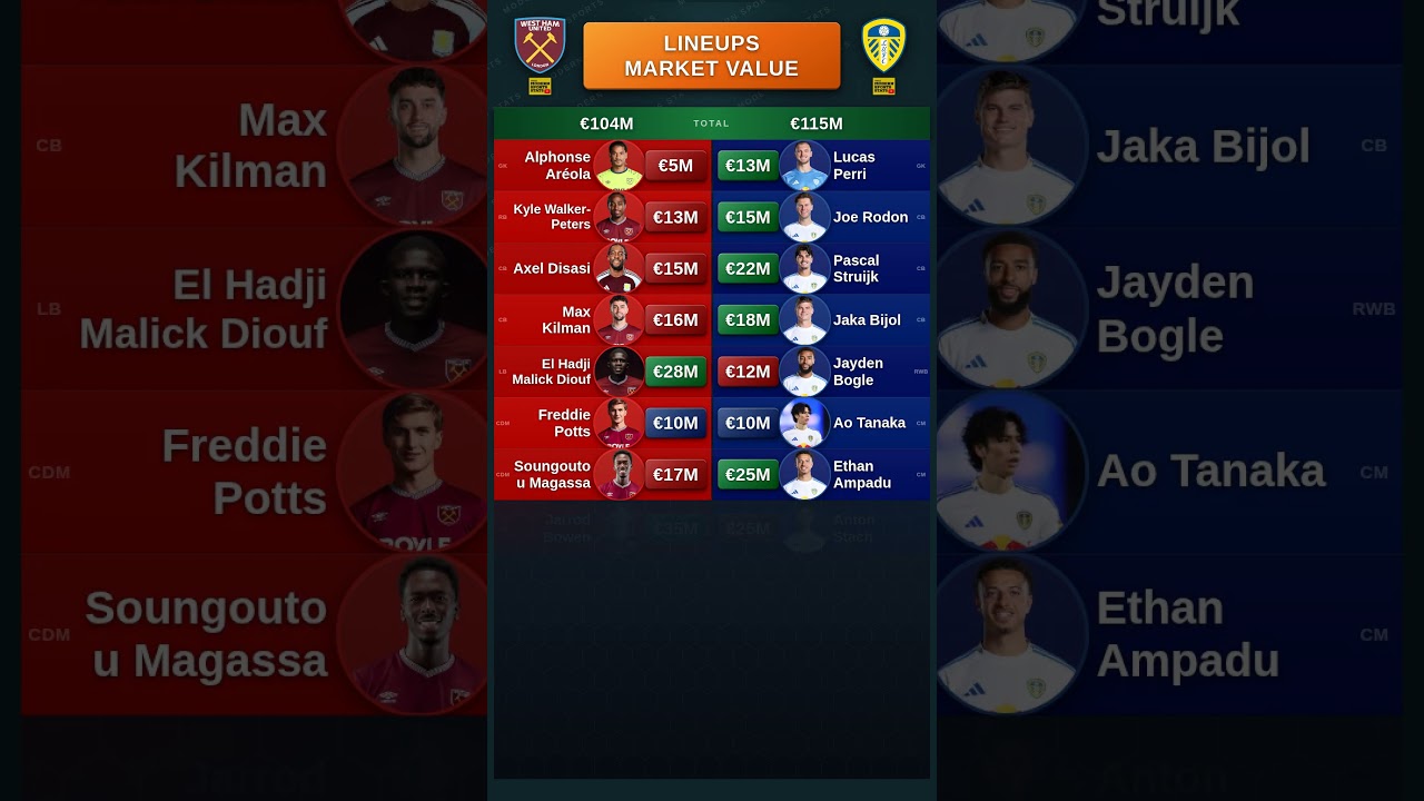 West Ham United – FA Cup 2014 – FA Cup 2013 – FA Cup 2013 – FA Cup Leeds a gagné aux tirs au but. West Ham United – Alphonse Areola et Kyle Walker-Peters Leeds United – Alphonse Areola et Kyle Walker-Peters Leeds United – Lucas Perri et Joe Rodon Lucas Perri et Joe Rodon Soungoutou Magassa Jarrod Bowen Mateus Fernandes Adama Traoré Valentine Espagnol #westham #leeds #football #soccer #marketvalue #facup #lineup #football