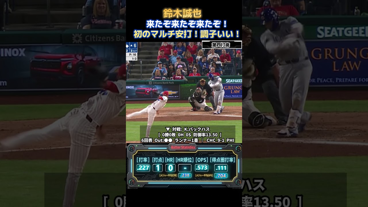 Suzuki des Cubs a enregistré son premier match à plusieurs coups sûrs de la saison et a contribué à cette grande victoire. En 5e manche, il a touché le terrain central. Lors de la 4e présence au bâton de la 6e manche contre le gaucher Buck Huss, avec un compte de 2-2, il a raté un retrait au bâton avec une double couture intérieure, mais c’était un « défi ». Il a couvert le ballon et l’a fait rebondir vers la droite après un compte complet.
