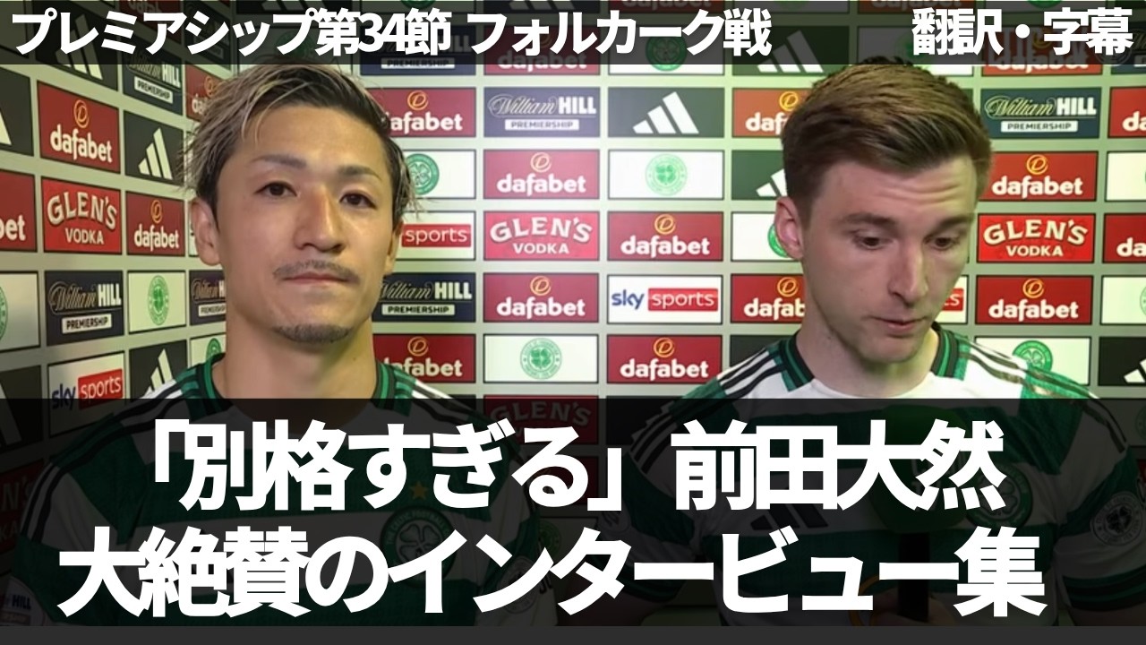 #Daizen Maeda #Celtic #Overseas Reactions Le Celtic a affronté Falkirk lors de la 34e journée de la Premiership écossaise et a gagné confortablement 3-1. Daizen Maeda a réalisé une performance écrasante avec deux buts et une passe décisive, et l’entraîneur et les joueurs l’ont hautement félicité après le match. Source : Nom de la chaîne : Celtic Fan Content Titre de la vidéo : Martin O’Neill Réaction d’après-match et éloges pour Maeda | Lien Celtic 3-1 Falkirk : https://www.youtube.com/watch?v=cNjxrxD_Gok Titre de la vidéo : « La foule était en feu » Liam évalue la réaction d’Alistair Johnston après le match | Celtic 3-1 Falkirk Lien : https://www.youtube.com/watch?v=SLkRxw1PIz0 Nom de la chaîne : Celtic FC Titre de la vidéo : Sur le match avec Martin O’Neill (25/04/26) Lien : https://www.youtube.com/watch?v=_6G1ELy9_1E Titre de la vidéo : Sur le match avec Daizen Maeda et Kieran Tierney (25/04/26) Lien : https://www.youtube.com/watch?v=Y-sbiXyAYPc Avertissement : dans cette vidéo, nous avons inclus des clips d’autres créateurs à des fins de commentaires, de critiques ou de contenu éducatif, ce qui relève de la doctrine de l’utilisation équitable. Nous avons fait des efforts pour garantir que ces clips sont utilisés conformément aux principes d’utilisation équitable et ne portent pas atteinte aux droits d’auteur ou aux licences des créateurs originaux. Si vous pensez qu’un contenu de cette vidéo peut porter atteinte à vos droits, veuillez nous contacter directement afin que nous puissions résoudre le problème rapidement. Nous apprécions votre compréhension et votre coopération.