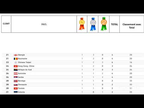 Classements et médailles des JO de Tokyo 2021 30/07/2021 #tokyojoshiprowrestling