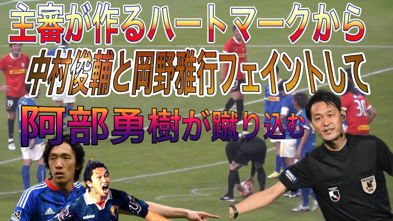 Yuki Abe donne un coup franc de la marque du cœur faite par l’arbitre Iemoto Shunsuke Nakamura et Masayuki Okano font une feinte