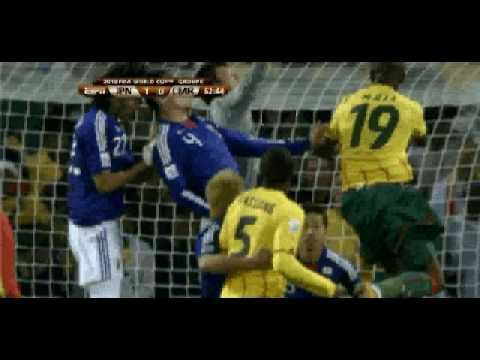 L’incroyable gardien Eiji KAWASHIMA attrape le ballon lors du match Japon – Cameroun de la Coupe du Monde 2010. Je réalise que la photo est de Yoshikatsu KAWAGUCHI mais bon, vous comprenez la blague.