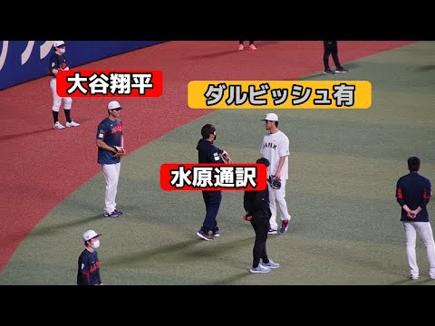3/4 (sam) Samurai Japan vs. Chunichi Avant le match, Shohei Otani et Yu Darvish, interprète de Suwon, discutent ! #Baseball Chubu #Samurai Japan #Shohei Otani #Yu Darvish