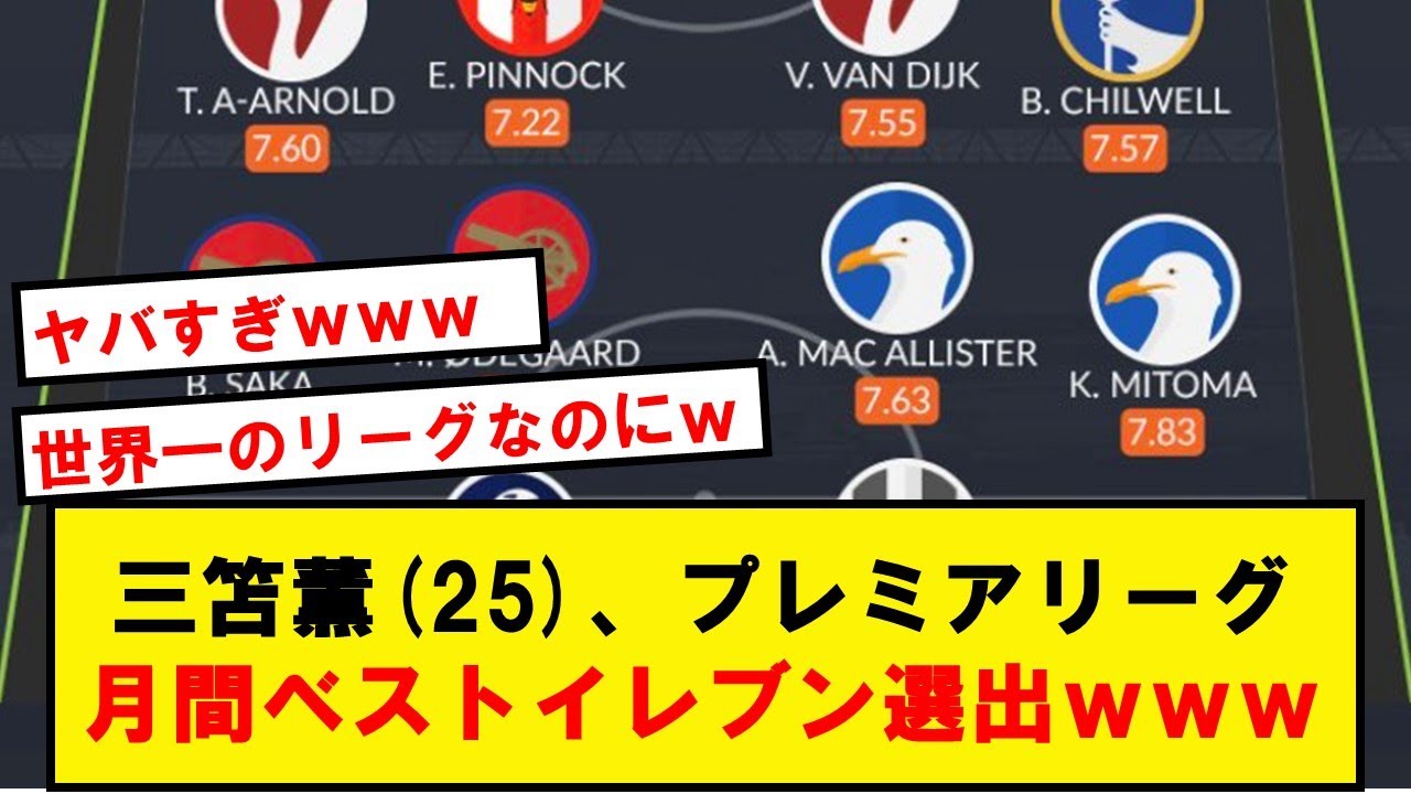 [Dimension différente]Kaoru Mitomo, sélectionné par inadvertance comme le meilleur onze de la Premier League March wwwwww[Réaction Twitter]