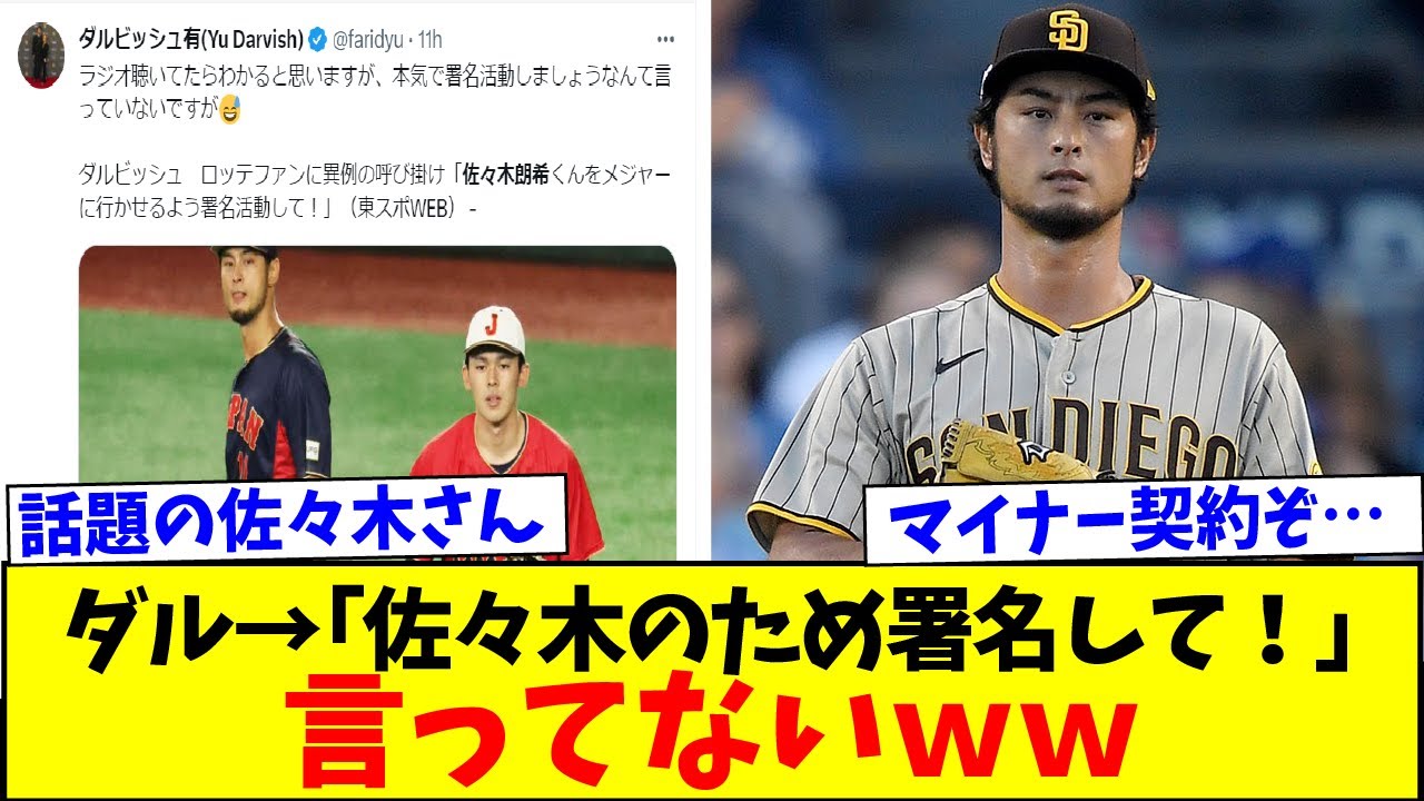 Yu Darvish parle de la campagne majeure de signature d’Aki Sasaki mdr[Réaction de Nan J Nan G][2ch5ch][Réaction à l’étranger]