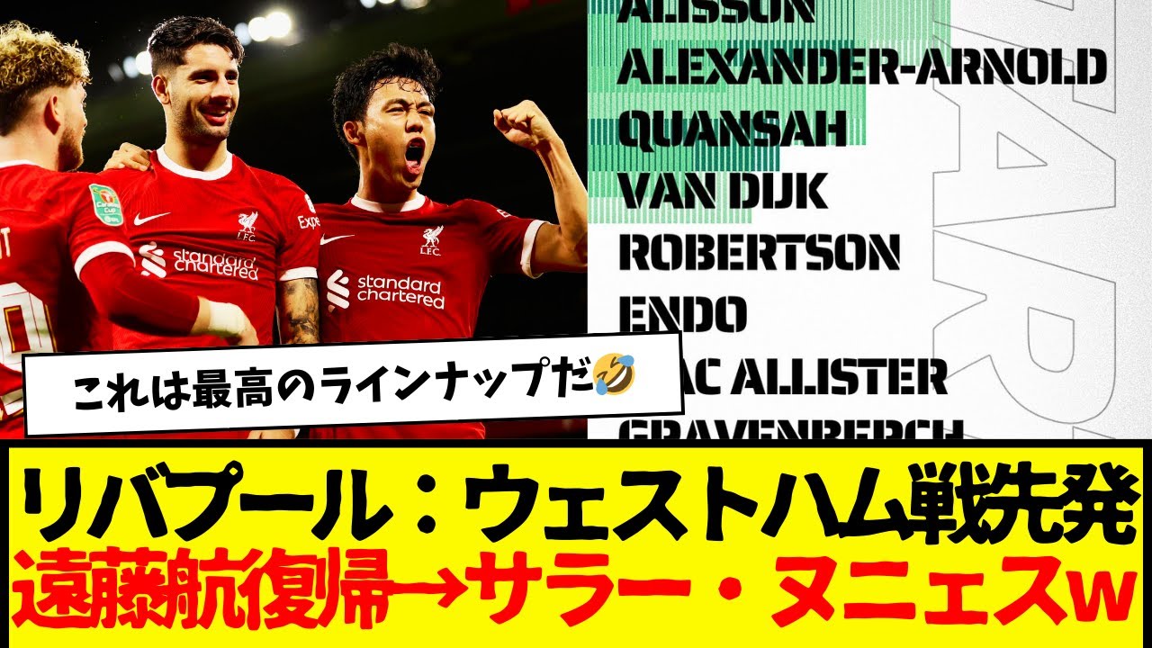 La défaite de Liverpool contre Everton les a mis dans une situation où remporter le championnat est presque impossible. Wataru Endo revient dans la formation de départ. Salah et Nunez, qui ne se sentent pas bien, ont débuté sur le banc. #Liverpool #Wataru Endo #Premier League #Manchester City #Arsenal #Goal #Klopp #Takehiro Tomiyasu #West Ham #Goal #Starting lineup #twitter #nanj ▶Nous fournissons les dernières informations et sujets sur le football. « Informations de transfert », « Rumeurs de transfert », « Résultats de match », « Observations personnelles », « Anecdotes émouvantes », « Épisodes MDR », etc. *Fondamentalement, nous publions uniquement du contenu lié au football. ▶Abonnez-vous à la chaîne Si vous l’aimez ne serait-ce qu’un peu, n’hésitez pas à liker. J’essaie de publier au moins une fois par jour. ▶Lors de la publication, le but n’est pas de calomnier ou de violer le droit d’auteur. Bien que nous ayons apporté le plus grand soin à la création de ce site, si vous avez des inquiétudes, nous apprécierions que le détenteur des droits d’auteur puisse vous contacter directement. Je répondrai dans les plus brefs délais.