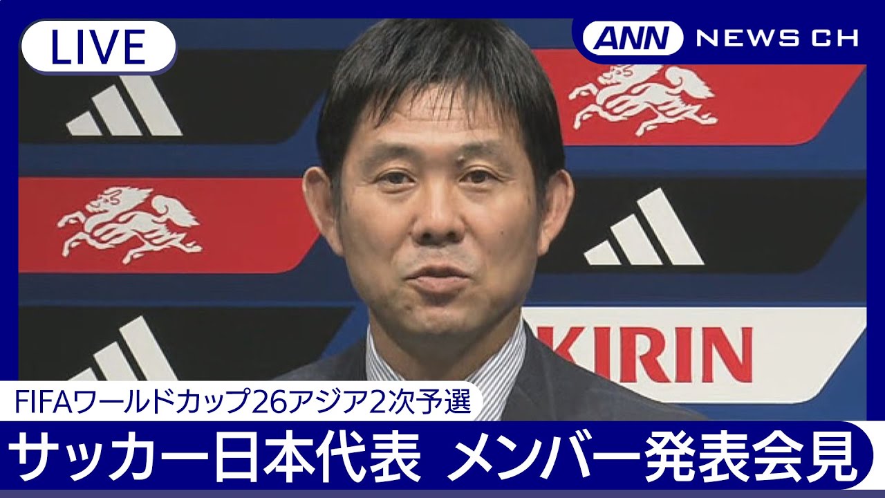 [Membres]▽GK Mayuya Maekawa (Vissel Kobe) Keisuke Osako (Sanfrecce Hiroshima) Akio Tani (FC Machida Serbie) ▽DF Yuto Nagatomo (FC Tokyo) Shogo Taniguchi (Al Rayan) Ko Itakura (Borussia Menchen) Gladbach) Hiroki Machida (Union Saint Giroise) Takehiro Tomiyasu (Arsenal) Hiroki Ito (VfB Stuttgart) Daiki Hashioka (Luton Town) Yuse Sugawara (AZ Alkmaar) ▽MF/FW Wataru Endo (Liverpool FC) Takumi Minamino (AS Monaco) Hidemasa Morita (Sporting CP) Daichi Kamata (SS Lazio) Yuki Soma (Casa Pia) Koki Ogawa (NEC Nijmegen) Daenen Maeda (Celtic) Reio Hatate (Celtic) Ritsu Doan (SC Freiburg) Ki Ueda World (Feyenoord) Aoi Tanaka (Fortuna Düsseldorf) Takumu Kawamura (Sanfrecce Hiroshima) Keito Nakamura (Stade Reims) Takefusa Kubo (Real Sociedad) Yuito Suzuki (Brendby IF) « FIFA World Cup 26 Asian 2nd Qualifiers » Les éliminatoires de la Coupe d’Asie de l’AFC Arabie Saoudite 2027 2024 auront lieu contre l’équipe nationale du Myanmar le 6 juin (jeudi) , suivi par l’équipe nationale syrienne le 11 juin (mardi). #samuraiblue #FIFAWorldCup #soccer #football #World Cup #Hajime Moriyasu #Moriyasu Japan #soccer #Japan National Team #Samurai Blue #Live #LIVE #Relay — ■JapaNews24 – Distribution 24 heures sur 24 de l’actualité japonaise https://www .youtube.com/watch?v=coYw-… ■ Site officiel de TV Asahi News TV Asahi news https://news.tv-asahi co.jp/ ■ Compte officiel de TV Asahi News SNS.