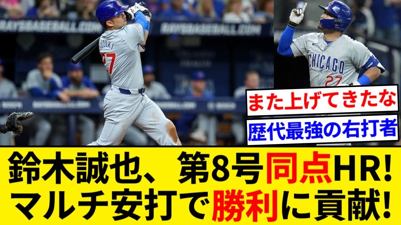 Seiya Suzuki a contribué à la victoire des Cubs avec plusieurs coups sûrs, dont le home run égalisateur n°8 ! ![Résumé 5ch][Résumé Nan J]