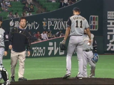 La balle frappée de Yuya Hasegawa de Fukuoka Softbank a touché Darvish ! (10 avril 2010 Fukuoka Softbank Hawks contre Hokkaido Nippon-Ham Fighters) #Fukuoka Softbank Hawks #Hokkaido Nippon-Ham Fighters #Darvish #Direct hit #NPB #Professional Baseball