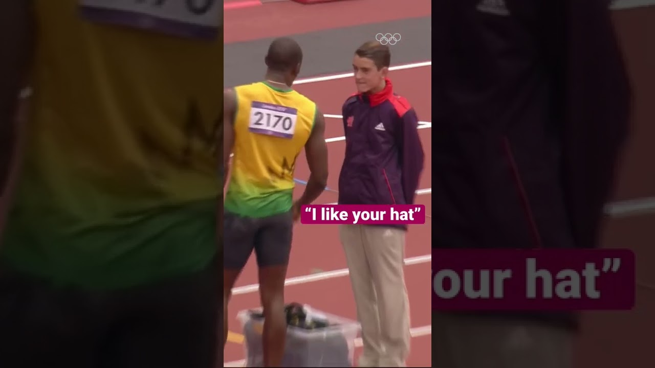 Usain Bolt gives a lucky volunteer his hat!