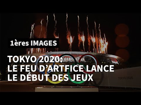 Des feux d’artifices sont lancés lors de la cérémonie d’ouverture des Jeux olympiques de Tokyo dans le stade national olympique, d’une capacité de 68 000 places, devant quelque 950 officiels et dignitaires, dont l’empereur du Japon Naruhito, le président français Emmanuel Macron et la première dame des Etats-Unis Jill Biden.
